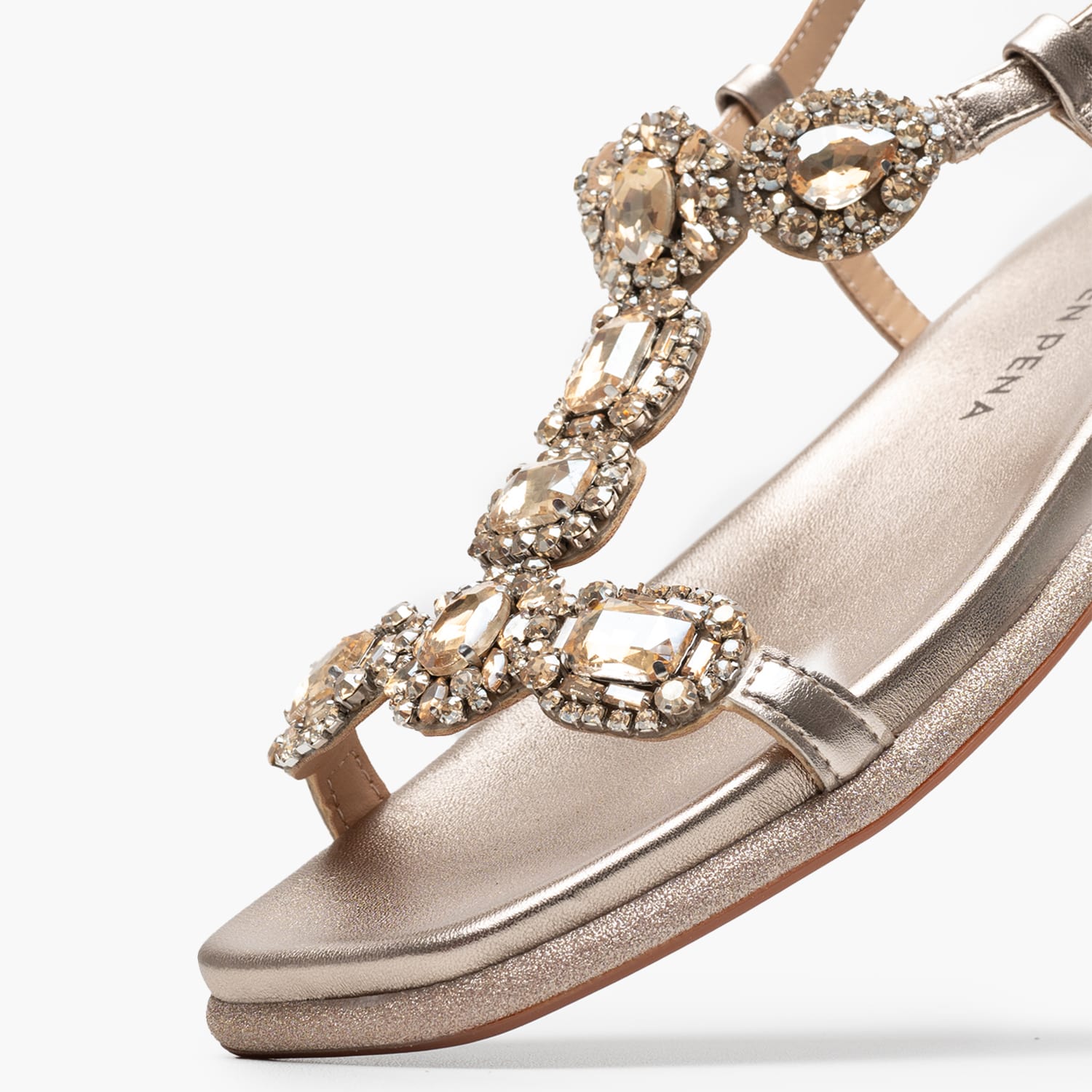 Γυναικείες Γόβες & Peeptoes Χαμηλές , κωδ. I250531, με Strass εξωτερικά και με Δέρμα εσωτερικά. Διατίθεται σε χρώμα Μπρονζέ. Αυτή η Μπρονζέ Γόβα, σ..