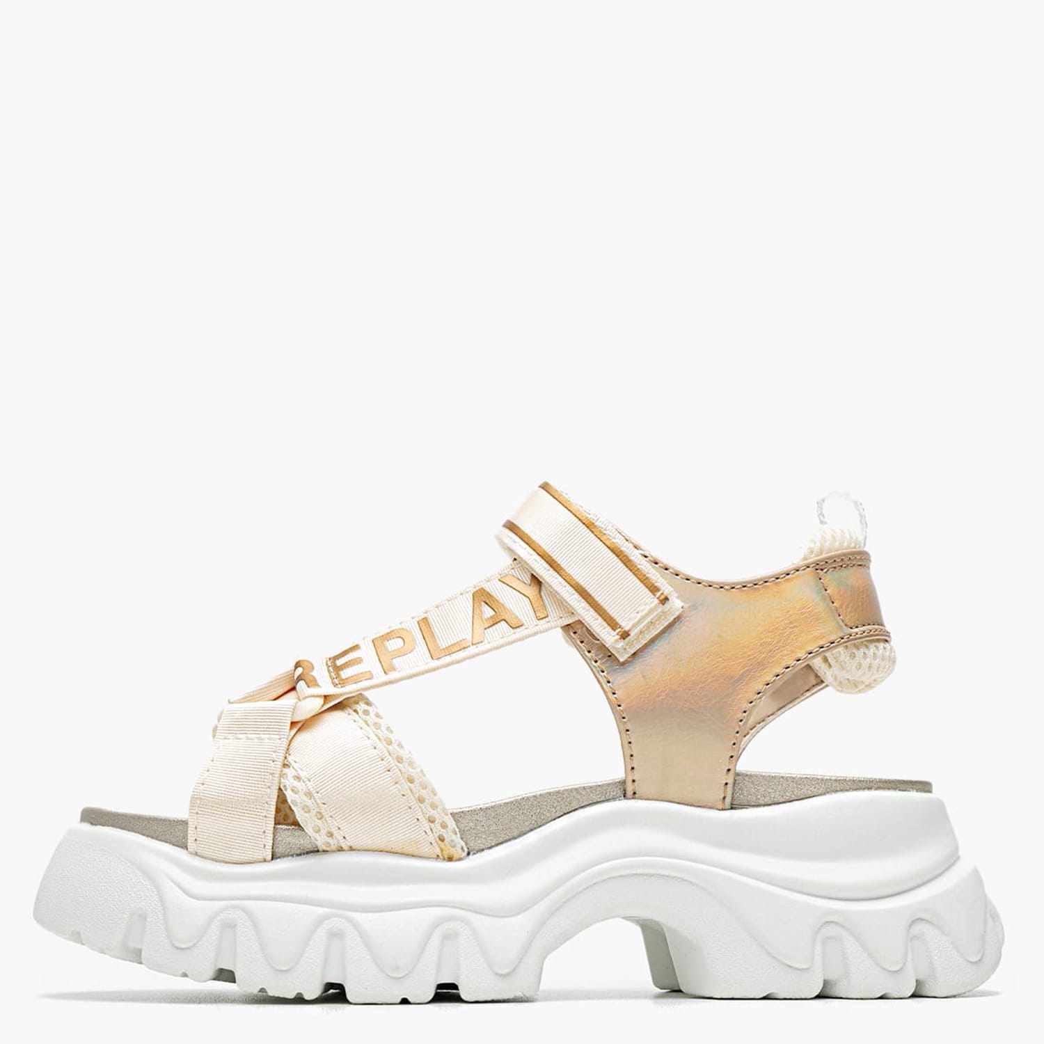 Παιδικές Σαγιονάρες & Πέδιλα της εταιρείας Replay, κωδ. Sandal.5, με ECOleather εξωτερικά και με ECOleather εσωτερικά. Διατίθεται σε χρώμα Μαύρο, Χρυ..